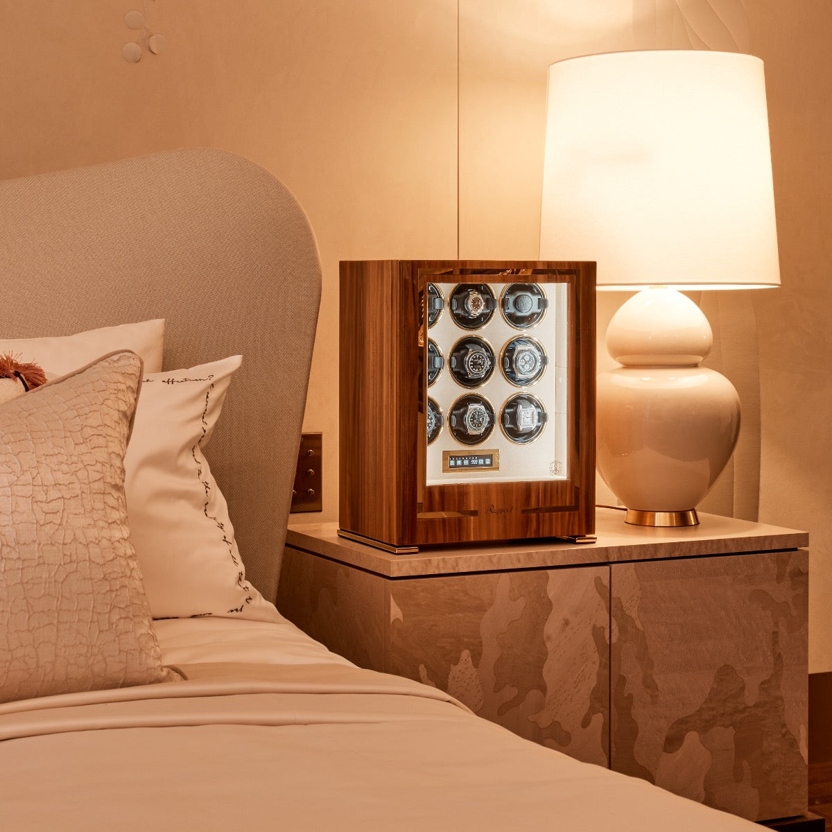 Our one-of-a-kind twenty watch winder is an exquisitely designed and meticulously crafted device specifically designed to store and maintain a collection of up to twenty automatic or self-winding wristwatches. It features a motorized mechanism that gently rotates each watch to keep them running when not being worn.