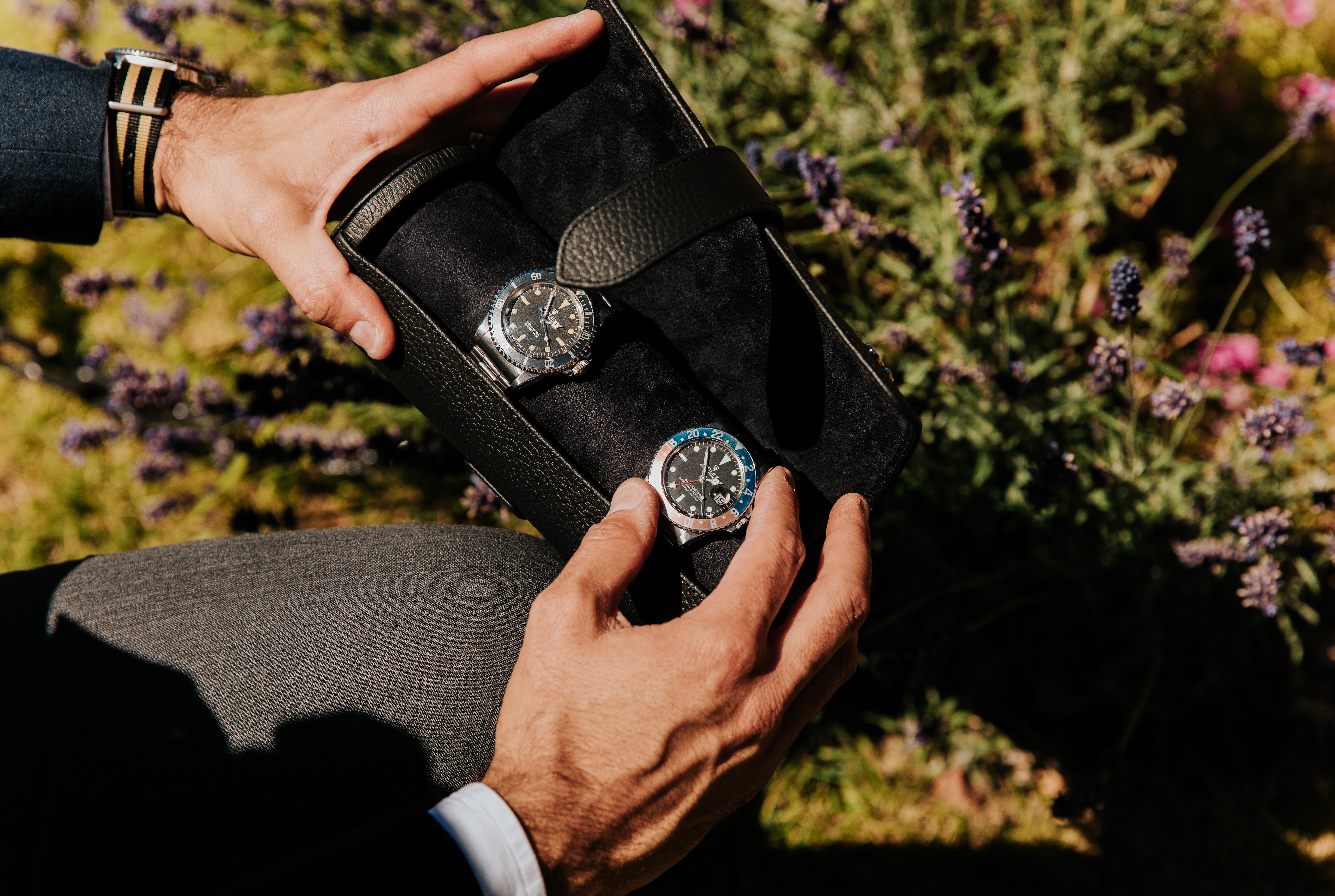 내부는 부드러운 스웨이드로 안감 처리되어 있으며 가장자리는 손바느질 처리되어 있습니다. 시계 롤에는 최대 3개의 시계를 제자리에 안전하게 고정할 수 있는 착탈식 소프트 패딩 쿠션이 있습니다. 실용적인 만큼 심미적으로도 만족스러운 프리미엄 워치 롤입니다.