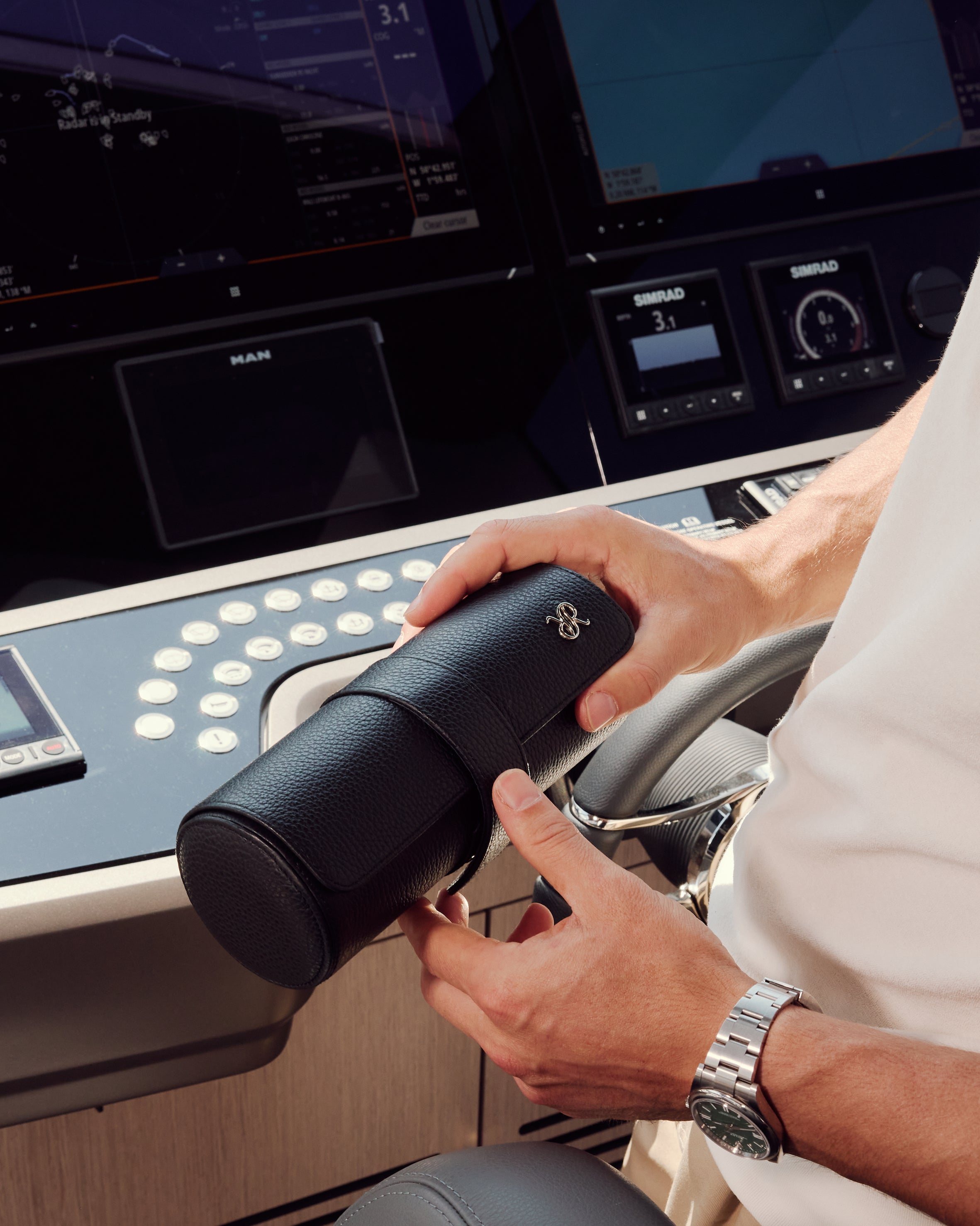 - Rapport sources the finest leathers, woods, and gold-plated fastenings.